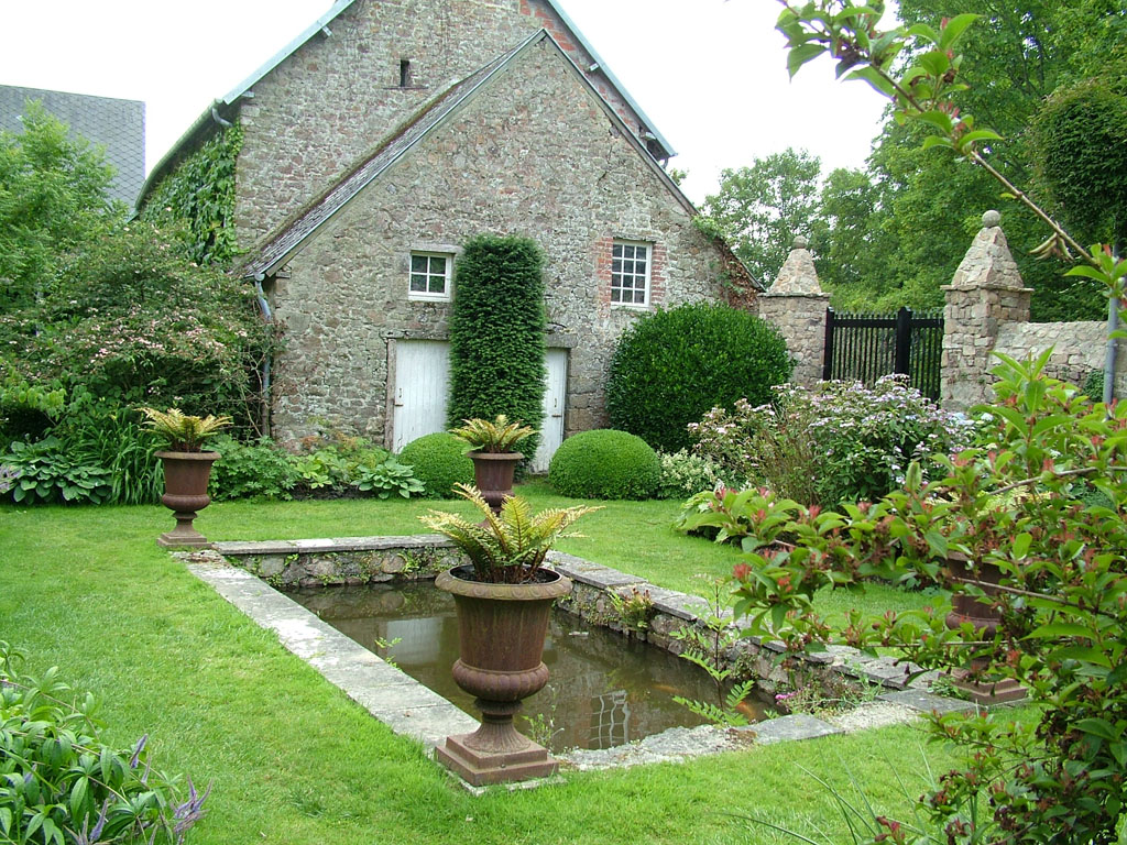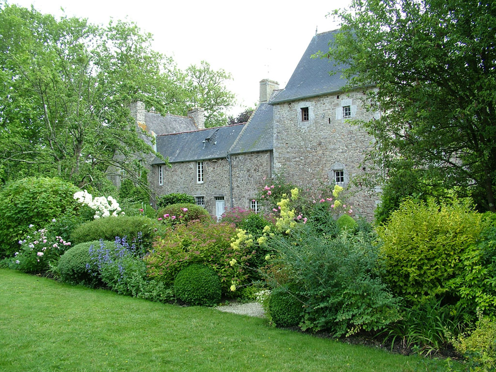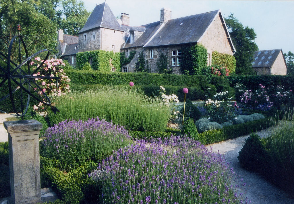 Jardín de 1000 m², creado en 1987, compuesto por diferentes estancias temáticas: jardín de verano, jardín vallado, jardín blanco, en una primera parte que está bajo la influencia de una distribución flexible y un jardín de flores de rosales creado en Normandía, con un trazo geométrico, como una mirada al castillo del siglo XVII que destaca en el paisaje circundante.