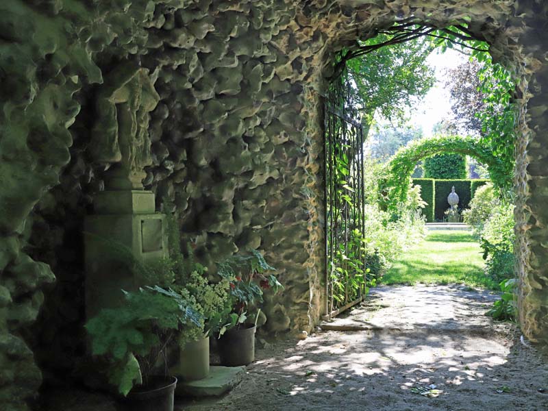 Se inspiró en los Jardines de Pilnitz, palacio de verano de los reyes de Sajonia, cerca de Dresde, para componer estas cinco habitaciones de vegetación rodeadas de setos de vegetación rodeados de encantadores setos. Allí redescubrirás los placeres hidráulicos: un órgano armónico, una carpa tártara, un inesperado juego de rayuela. Un complemento misterioso lo proporcionan un laberinto salvaje y otro de forma geométrica. En la curva del camino, se pueden ver pavos reales blancos, cabras en miniatura, faisanes dorados, gallinas chinas, …