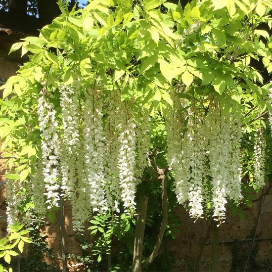 También hay que mencionar los numerosos árboles podados en topiarios, las bolas de acebo en cajas de naranjos y el pequeño jardín de hierbas aromáticas. Los jardines son verdes, blancos y azules. El boj, los tejos y los dijes declinan en verde. Una colección de laureles, osmantos, acebos, se apoya contra la pared de la última terraza. Según las estaciones, las flores son tulipanes, lirios, eléboros, peonías, romneya coulteri, cardos, magnolias.