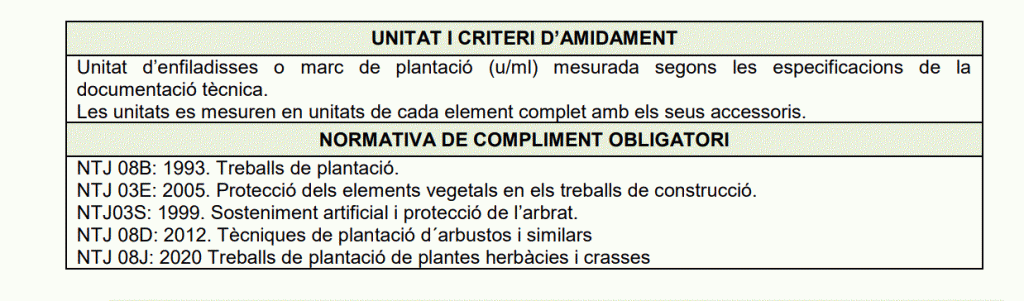PLEC DE PRESCRIPCIONS TÈCNIQUES PER AL DISSENY, L’EXECUCIÓ I LA RECEPCIÓ D’ESPAIS VERDS
