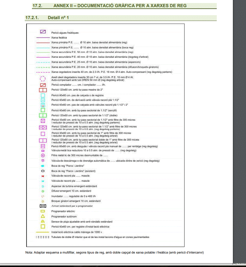 III. Plano de red de riego con la leyenda de PiJBIM