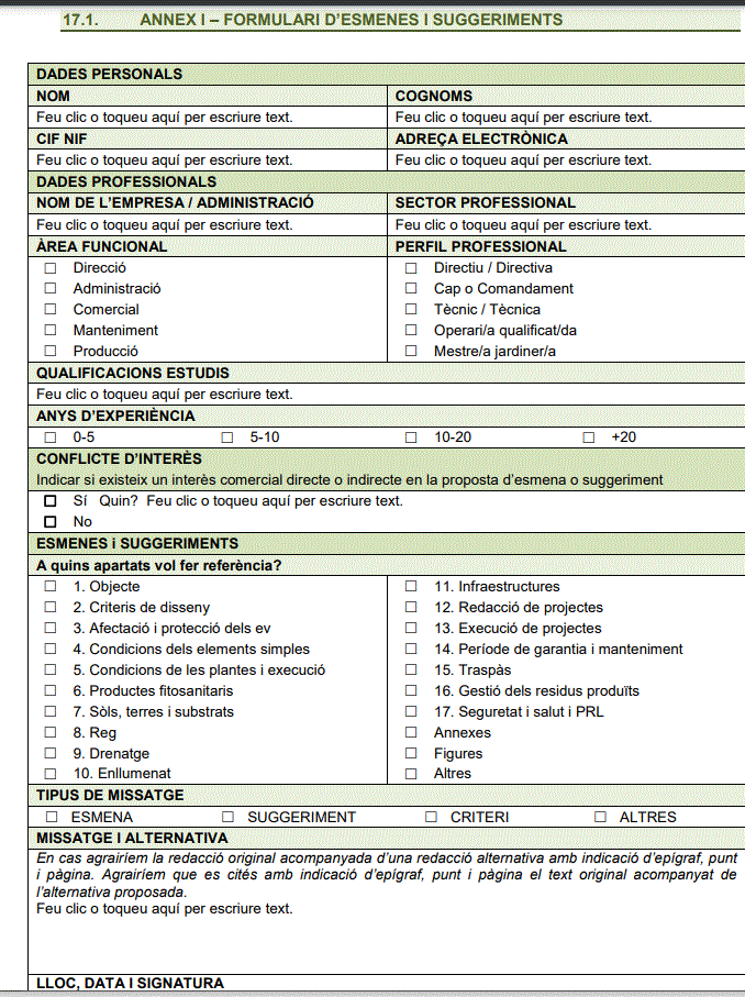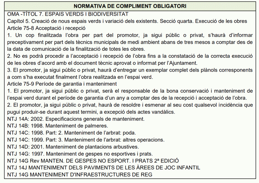 PLEC DE PRESCRIPCIONS TÈCNIQUES PER AL DISSENY, L’EXECUCIÓ I LA RECEPCIÓ D’ESPAIS VERDS