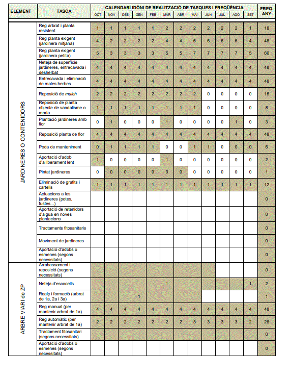 Descripción de las fases de ejecución de los trabajos de carácter indicativo, con calendario de estaciones y previsión de épocas de plantación adecuados para las especies especificadas en el proyecto. Las mejores épocas de plantación vendrán definidas por los calendarios indacts por PiJBIM, que podrá declinar la recepción de toda jardinería realizada contra su criterio por el elevado riesgo de quiebra y pérdida de patrimonio vegetal.