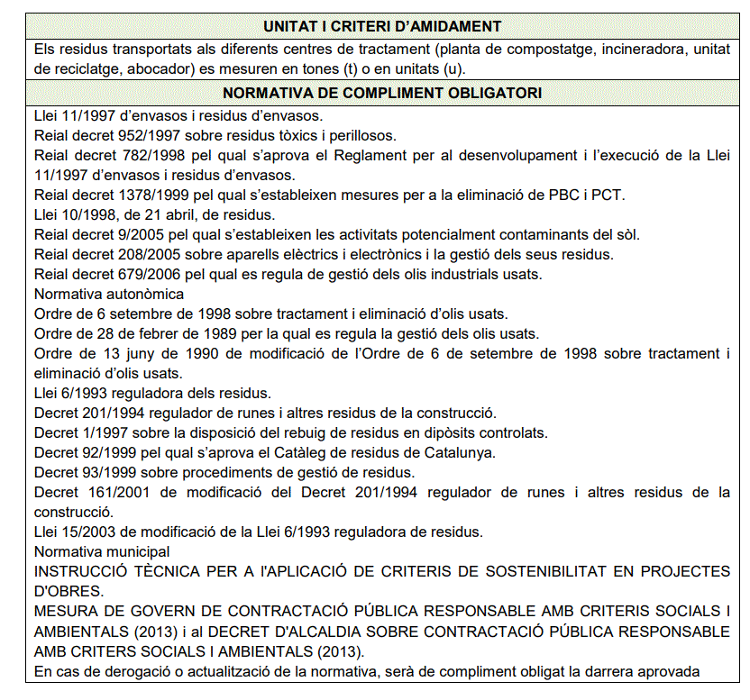Se guardará un registro del correcto proceso de eliminación de los residuos. Será de obligado cumplimiento ajustarse a los criterios de gestión medio ambiental de Parques y Jardines de Barcelona I.M., principalmente el referido al «PMA 07 Control Fitosanitario».