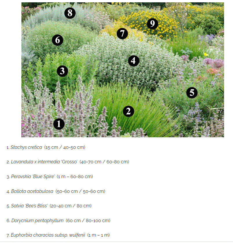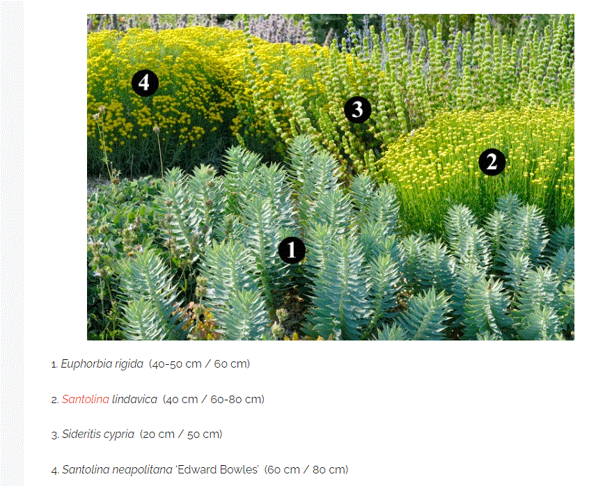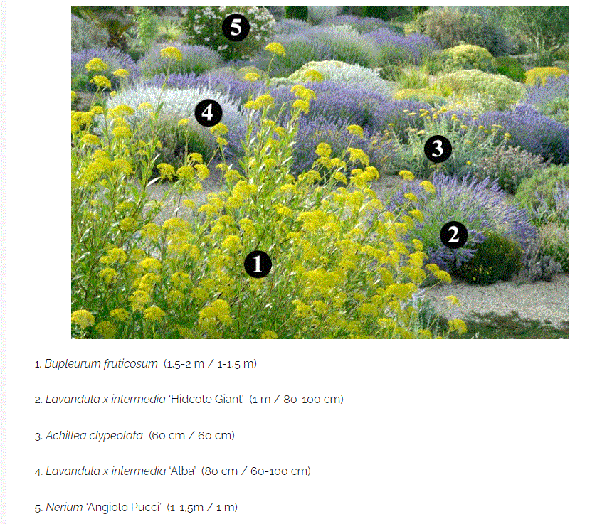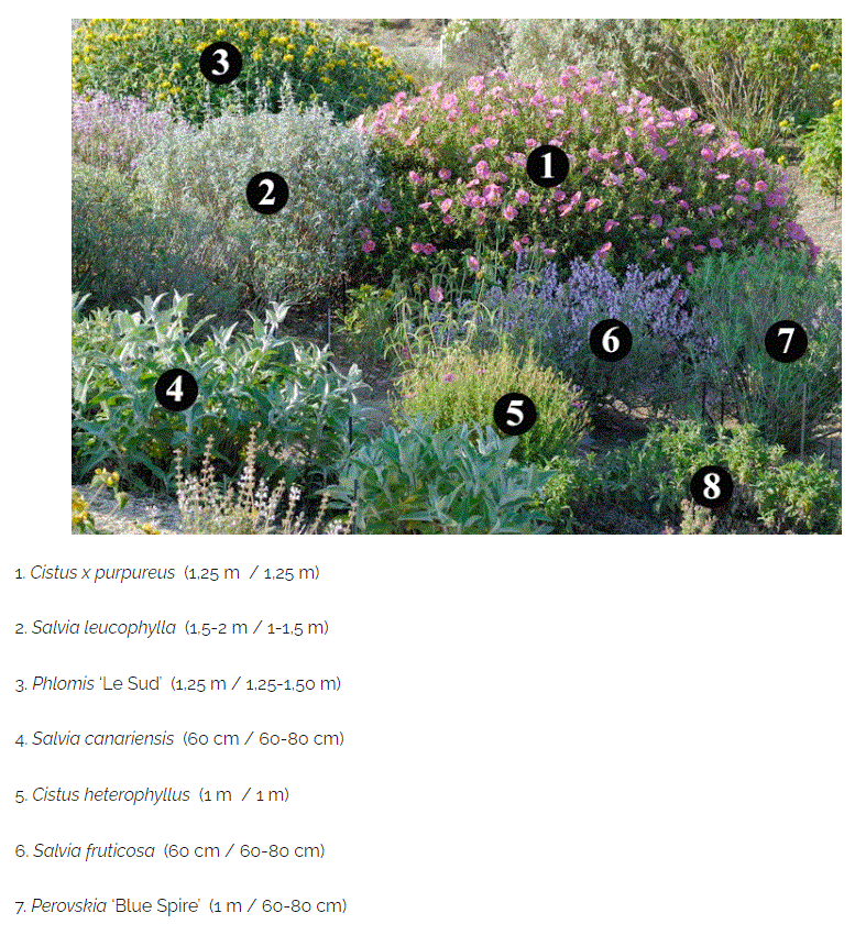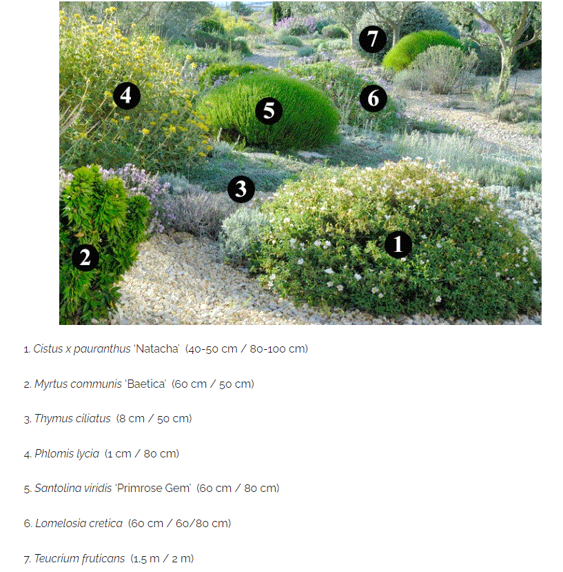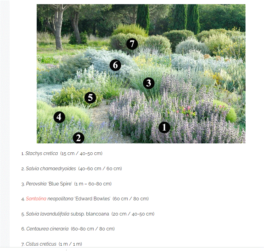 En el catálogo de plantas de Jardin Sec de Oliver Filippi en Méze Francia encontramos muchas plantas seleccionadas durante muchos años de la cuenca mediterránea, cultivadas y adaptadas a este tipo de jardines.