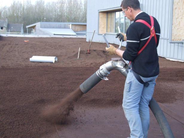 Ahora necesita agregar su sustrato; esto probablemente será alguna forma de combinación de agregado y material orgánico. Extienda esto de manera uniforme por toda el área del techo hasta la profundidad requerida según su diseño.