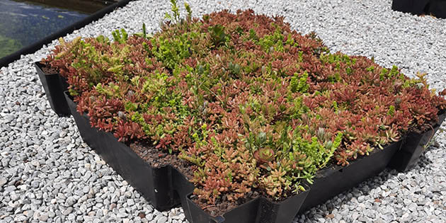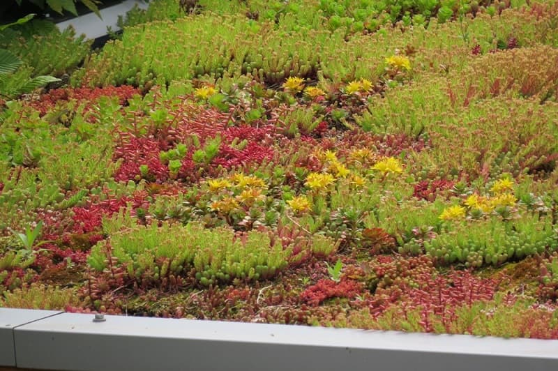 Las cubiertas verdes de Sedum son el tipo más común debido a su bajo requerimiento de agua y mantenimiento. Sedum también puede tolerar diferentes condiciones climáticas. Un techo de Sedum también es muy conveniente con tepes o mantas de sedum pre-cultivadas disponibles listas para instalar, proporcionando vegetación instantánea de bajo crecimiento para cualquier tamaño cubierta.