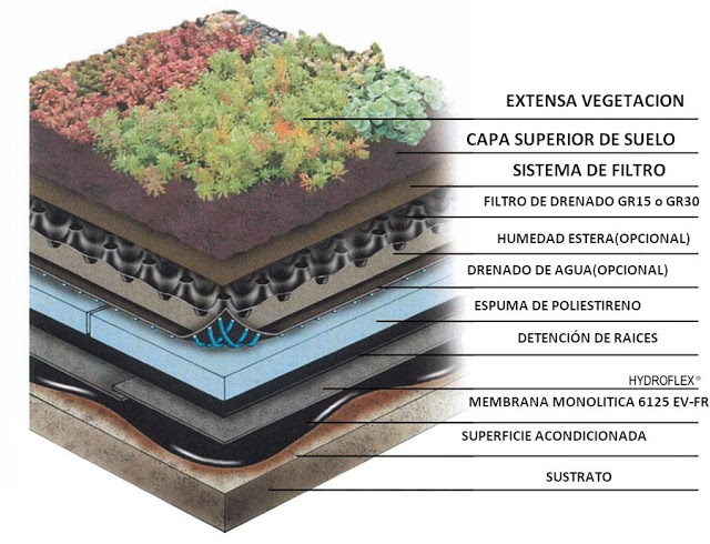 Ahora que hemos cubierto las consideraciones de diseño de un techo verde en el artículo anterior publicado en el blog, nos centraremos básicamente en su construcción y mantenimiento..-Empresas relacionadas DANOSA Cubiertas ajardinadas.- Polígono Industrial Sector 9 19290 FONTANAR (Guadalajara) y delegaciones en toda ESPAÑA y ZinCo ibérica S.A oSoprema, el especialista en impermeabilización y aislamientos
