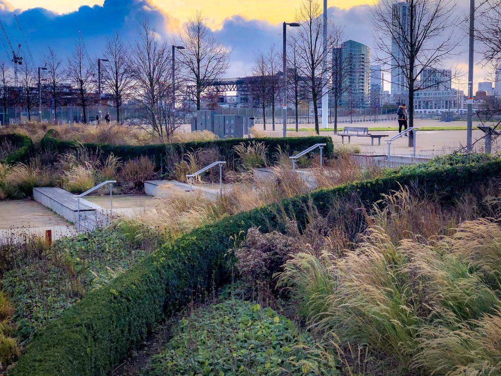 Partiendo de una pizarra en blanco y un sustrato estéril, la entrada normal de malezas ha estado en gran parte ausente, por lo que cada parte de la plantación del parque ha desarrollado su propia flora dinámica y dominante. Un «relanzamiento creativo» en algún momento ayudaría a mantener la diversidad y el enfoque visual, pero en su ausencia, parece que un equilibrio entre la gestión de la calidad y el proceso natural mantendrá su interés durante muchos años.