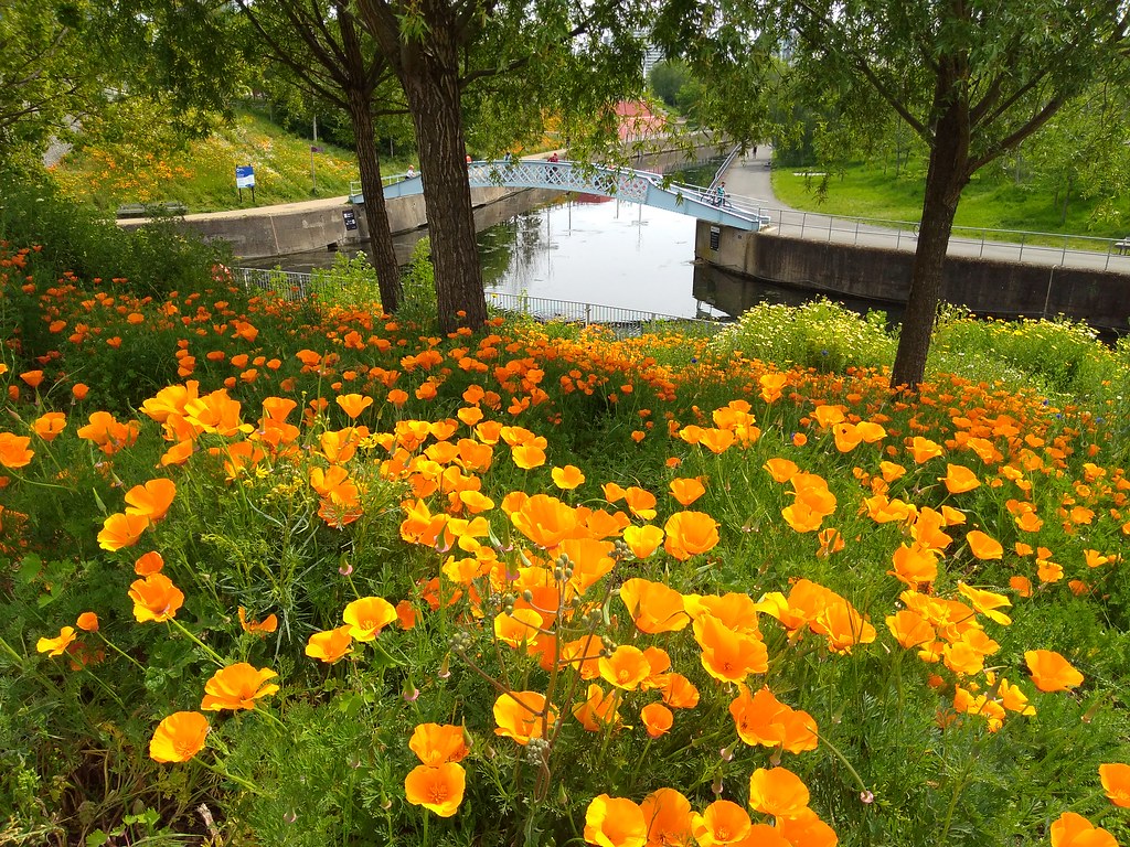 La principal de las anuales de éxito ha sido la amapola de California, Eschscholzia californica, cuyo ciclo de vida de germinación en verano u otoño junto con una larga temporada de floración le permite aprovechar al máximo la larga temporada de crecimiento del clima londinense.