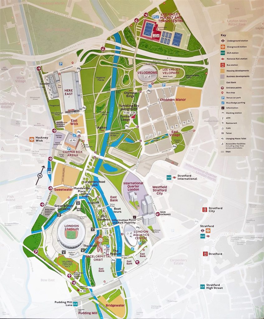 El Parque Olímpico Queen Elizabeth al este de Londres cubre 250 hectáreas, con 100 hectáreas de zonas verdes, es el parque nuevo más grande construido en Gran Bretaña desde la época victoriana. Es un parque largo y delgado que sigue el curso del río Lee y consiste en el South Park, que alberga muchas de las sedes utilizadas durante los Juegos Olímpicos; y el Parque Norte, que es un hábitat de bosque húmedo que corre a lo largo de las orillas del río.