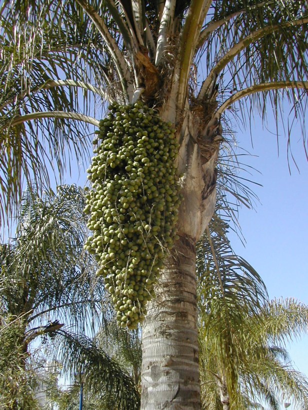 Floracion y fructificacion del Syagrus romanzoffiana. Syagrus en el Parque Vega de Triana