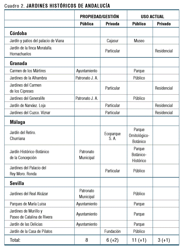 Cuadro 2. JARDINES HISTÓRICOS DE ANDALUCÍA
