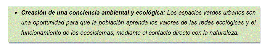 En este contexto, cabe destacar que, si bien históricamente el espacio verde urbano ha sido considerado un objetivo residual en la planificación urbanística, en la actualidad esta visión ha cambiado, dándose una gran importancia a los espacios verdes urbanos en los procesos de urbanización.