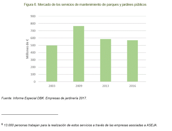 Si tenemos en cuenta que, en promedio, un municipio destina el 2,7% de su presupuesto al servicio de mantenimiento de parques y jardines, esto supone un mercado de 835 millones de euros en todo el territorio español de los que el 70% se corresponden a contrataciones del sector público. Además, hay aproximadamente 13.000 trabajadores empleados en la prestación de servicios de jardinería en el sector público.