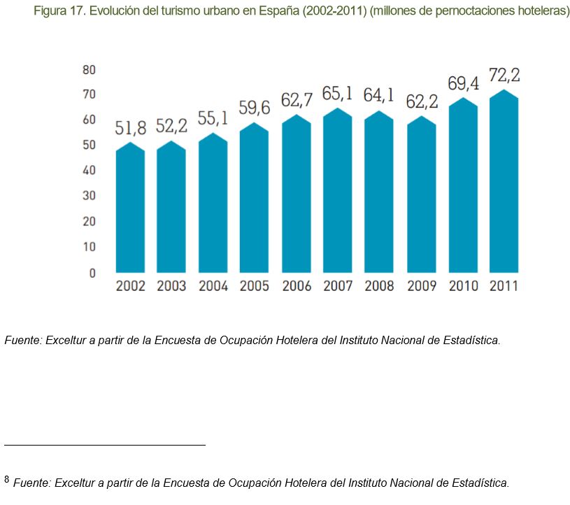 El turismo urbano se incrementó un 39% en España entre 2002 y 2011, acumulando un 20% de incremento adicional entre 2012 y 2016. Este incremento ha supuesto la generación de una mayor actividad económica para dar servicio a los visitantes, pero también supone un uso más intensivo de los espacios verdes urbanos, especialmente de aquellas zonas más emblemáticas desde un punto de vista turístico. Por este motivo, a la hora de dimensionar los servicios municipales de mantenimiento y conservación de los parques y jardines, resulta necesario tener en cuenta este factor, de manera que se destinen los medios adecuados para garantizar la calidad del medio ambiente urbano y, por lo tanto, su uso social, tanto por parte de la ciudadanía residente, como por parte del visitante turístico.