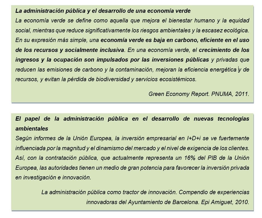 Las administraciones locales juegan un doble papel en la consecución de estos objetivos: por un lado, son responsables de implementar aquellas prácticas que permitan el alcance de los mismos a través del desarrollo de sus propios servicios, para de esta manera actuar como ejemplo respecto al sector privado, y por otro, dado su poder de compra, actúan como elemento tractor para el desarrollo de nuevas tecnologías ambientales que permitan el desarrollo de servicios con un menor impacto ambiental.