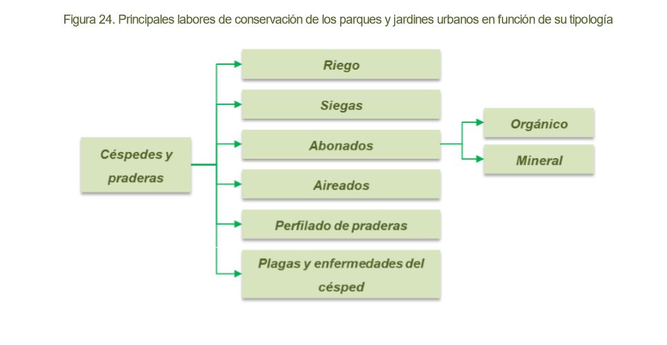 • Operativo: las frecuencias de mantenimiento, los tiempos dedicados a cada espacio verde, etc., determinan el nivel de servicio alcanzable y el coste de este.