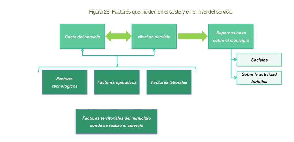 Los factores que inciden sobre el coste y nivel de los servicios alcanzables incluyen aspectos de carácter: