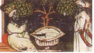 Esto fue el principio de una actitud no programada inicialmente, después, cumplida concienzudamente, la de adoptar todo aquello que sin menoscabo de su idea religiosa, pudiera ser incorporado para suplir sus carencias iniciales. La promesa coránica de agua, sombra, flores, frutos, tendrá una imagen visible y repetible, es decir, rememorable a partir del metafísico jardín sasánida, en Persia, donde descubrieron el arte y sus prodigios. Era un jardín cuatripartito, un espacio cuatripartito, sí pero con qué, cómo, por qué ese reparto espacial, esa intervención en el medio (lo que luego se llamará «arquitectura del paisaje»). Un «orden» simbólico, un cosmos que recurre a los signos que el subconsciente colectivo aporta: un arquetipo. Esa repartición es una consecuencia, lo fundamental, el medio, el signo, es la intersección de dos rectas en ángulo recto, una cruz. Una de las fórmulas de recóndita expresión humana, de las más antiguas que se conocen desde el Neolítico (recordar Piedra de Avelances, Plato de Eridú). Representación de los cuatro ríos sagrados. Las dos rectas que se cruzan son símbolo de la horizontalidad- tierra donde permanece el hombre y la verticalidad- cielo donde se busca a Dios. Un cuadrivio, cuatro direcciones, cuatro orientaciones. Los cipreses, los frutales, las plantas florales de las cuatro áreas de los jardines de Persia sasánida son imagen del estallido primaveral de la alta meseta iraní, entre las flores más sobresalientes, la rosa y el tulipán. Todo ello pasó a ser trasunto obligado del jardín islámico. Son ciertos los sistemas de riego preislámicos de sumerios y babilonios, que con sus canales lograron una planificación territorial, llevando el agua de más, donde había de menos, logrando una agricultura precaria pero sustancial; y los qanats persas sasánidas, sistema de captación y traslado del agua para regar huertos de palmeras, que ni son oasis ni palmerales. Ni es menos cierto que en Egipto, romanizado y cristianizado, cuando llega el Islam, aprendieron la utilidad y la estética de los estanques, para acopio del agua tras la retirada de las crecidas del Nilo, y los canalillos para regar huertos y los jardines del antiguo Egipto, de trazado esencialmente regular y simétrico, los primeros regulares de la historia mientras no se descubran otros anteriores y no como se refiere en algunos tratados de jardines, adjudicándoselo a los «franceses», lo que además no significa nada sin fecha. En su avanzar por el Norte de África conocieron restos cartagineses y romanos, ejemplos singulares que incorporan a su hacer los peristilos rehundidos, espacios habitables de frescor; hasta llegar a Hispania Tingitana de anterior pertenencia romana, donde los bereberes esperaron la ocasión de acceder a la Hispania visigoda, romanizada durante setecientos años, que mantenía claros vestigios por todo su paisaje, que aportaron una red de caminos y puentes nunca superada y una ingeniería hidráulica que en lo mayor, pantanos, presas y acueductos, aprovecharon y, en lo menor, albercas, norias, aceñas y acequias, impulsaron.