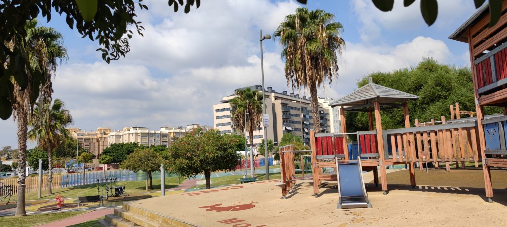 El parque cuenta con varias áreas infantiles de juegos dependiendo de la edad de los niños. La zona de los más mayores tiene una divertida tirolina por la que lanzarse una y otra vez sin parar. Entre los columpios destacan los muelles con forma de ballena o rinoceronte, la cama elástica, una estructura para trepar, un juego giratorio o la divertida mesa de ping-pong.