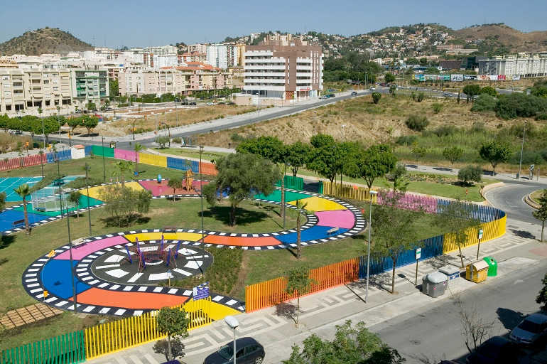 El Parque del Cine, un espacio ajardinado de 10.000 m² está inspirado en el mundo del séptimo arte , donde también podemos encontrar rincones dedicados al universo de los libros .Se encuentra situado en la barriada de Teatinos, donde viven muchos matrimonios jóvenes que tienen niños por lo que este parque se ha convertido en el protagonista de sus juegos.