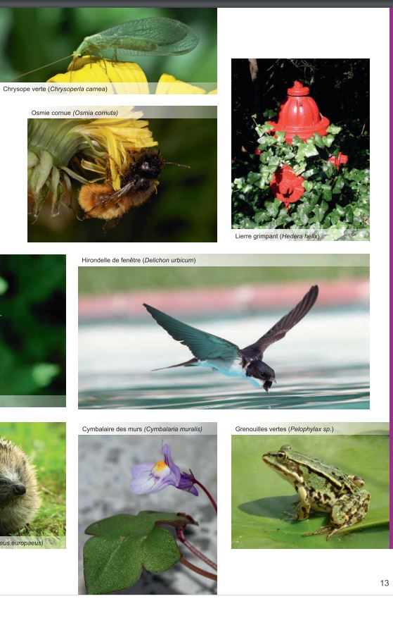 ¿De qué naturaleza hablamos cuando hablamos de biodiversidad urbana? Ciertamente, pensamos aquí en la naturaleza ordinaria y las especies comunes que viven cerca del hombre. En este documento nos referimos, por naturaleza en la ciudad, a la fauna y flora espontánea y salvaje, que vive independientemente del hombre ,aunque muy cerca de él. Por lo tanto, excluimos de esta definición a los animales domésticos o plantas hortícolas, incluso devueltas a la naturaleza. Por lo tanto, no mencionaremos aquí las especies raras y protegidas, a menudo consideradas con un fuerte valor patrimonial. Aunque se llaman «comunes», algunas de estas especies silvestres a menudo son desconocidas para el público y algunas de ellas, aunque no están en peligro de extinción, muestran una disminución más o menos acentuado. Por lo tanto, actuar por la naturaleza en la ciudad permite preservar la biodiversidad trabajando en los siguientes cuatro niveles complementarios:
