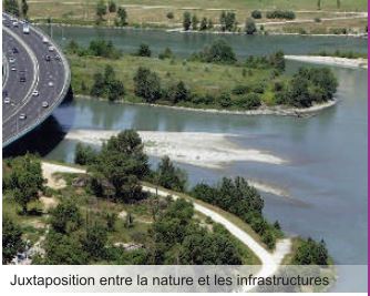 > Los espacios verdes que lo acompañan: medianas, explanada, entorno de edificios (privados o públicos). Espacios de interfaz, pueden ser relevos efectivos para la biodiversidad gracias a la presencia de hábitats potenciales para la fauna y la flora.