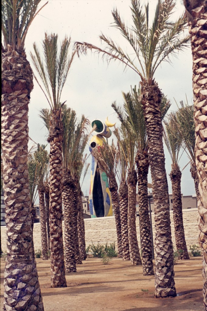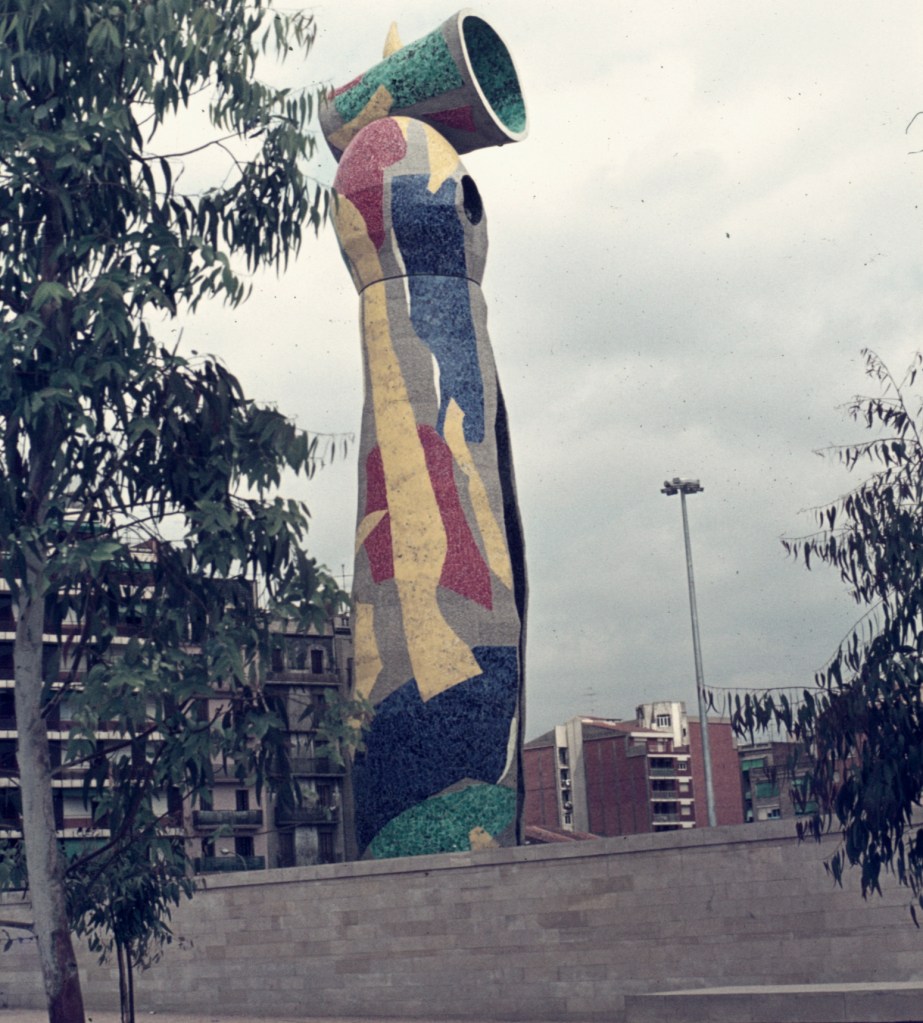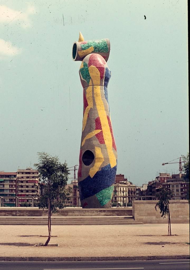 En uno de los extremos del estanque que hay en la gran plaza situada a la altura de las calles de Tarragona y de Aragón, la escultura Dona i Pájaro, de Joan Miró, de 22 m de altura, preside el gran espacio verde. Está hecha en trencadís y se ha convertido en uno de los grandes referentes del parque. Fue dada en Barcelona por su autor.