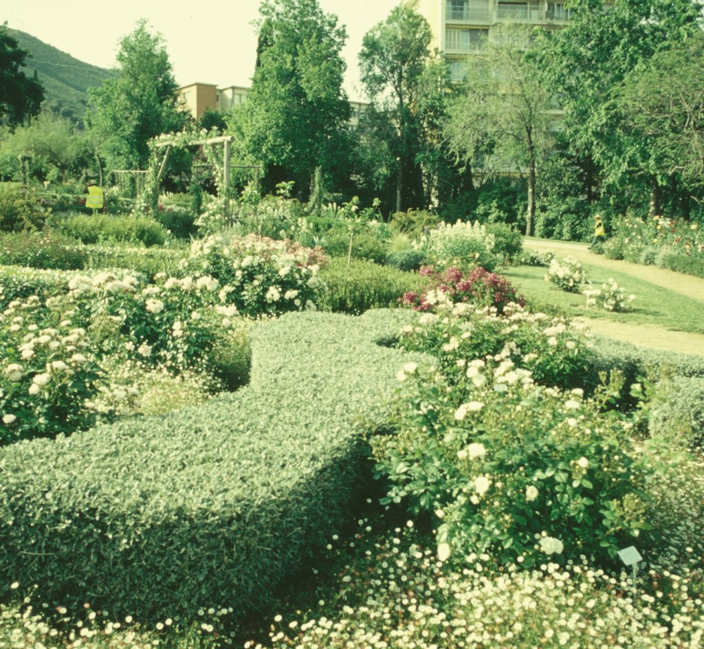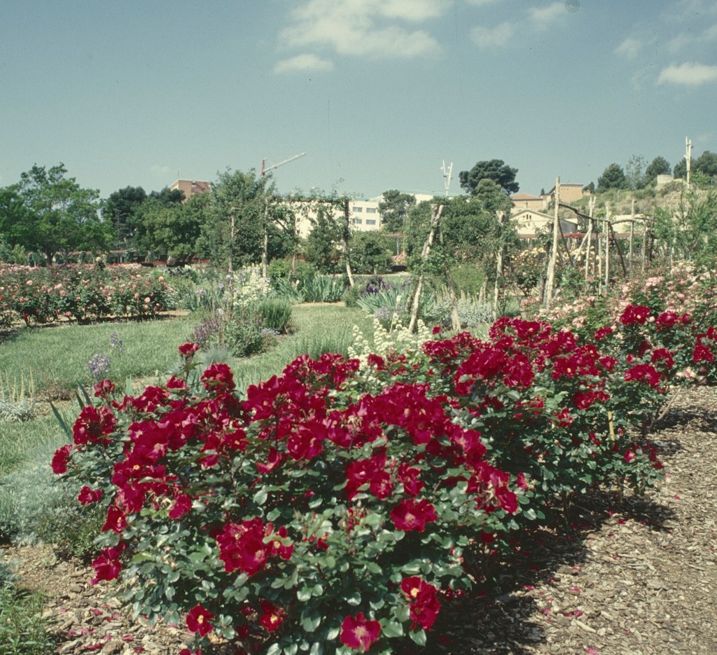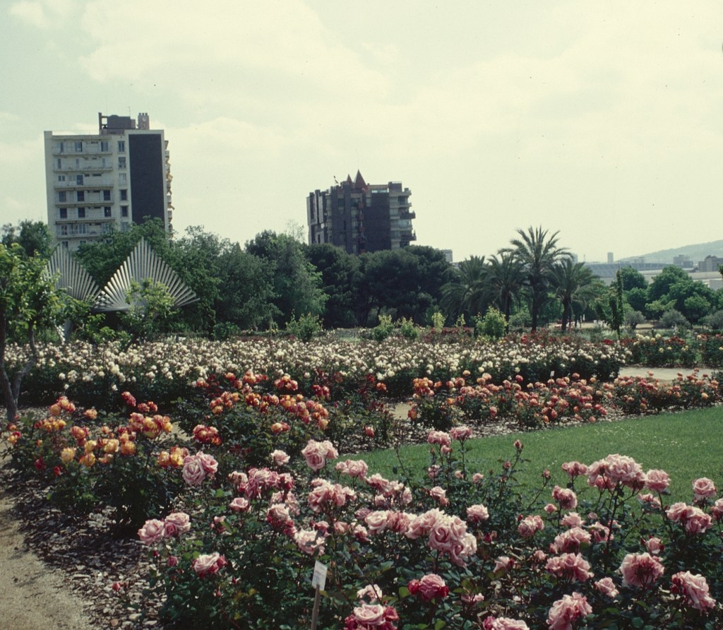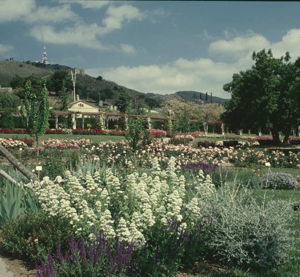 Dándonos la bienvenida, en el acceso principal de los jardines, en la avenida Diagonal, encontramos un espacio dedicado a los rosales, que destacan por el aroma de sus flores. Hay 235 variedades y no es necesario acercarse mucho para sentirse embriagado por el perfume de las rosas. Un aroma exquisito nos acompañará durante toda la visita