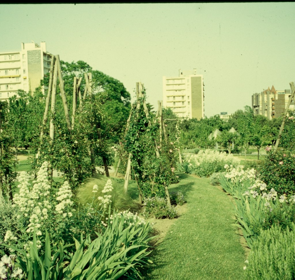 Esta zona del parque es rica en especies arbóreas y, haciendo compañía a los rosales, hay muchos árboles frutales, como el cerezo de flor ( Prunus serrulata), el peral ( Pyrus communis), el caqui ( Diospyros kaki), el manzano ( Pyrus malus), el membrillo ( Cydonia oblonga), el ciruelo ( Prunus cerasifera) y el azufaifo ( Ziziphus jujuba). También hay una gran presencia de plantas aromáticas, gramíneas, vivaces, iris y arbustos de flor, que delimitan y ornamentan los bordes de los parterres.