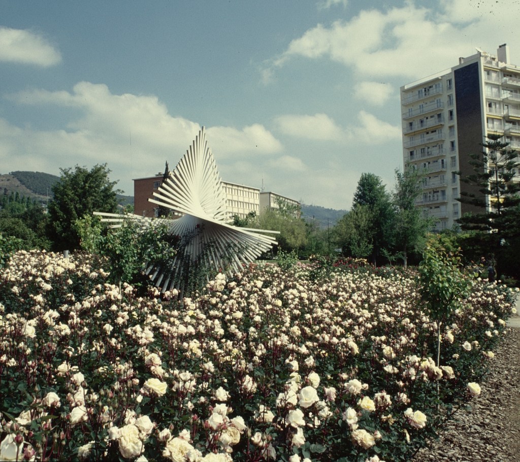 En la zona de la rosaleda hay dos esculturas: Rombes bessons (1977), de Andreu Alfaro, una obra de carácter geométrico situada cerca de la parte superior de la rosaleda y, delante del jardín de los perfumes, un desnudo femenino: Serenitat (1964), de Eulàlia Fàbregas de Sentmenat.