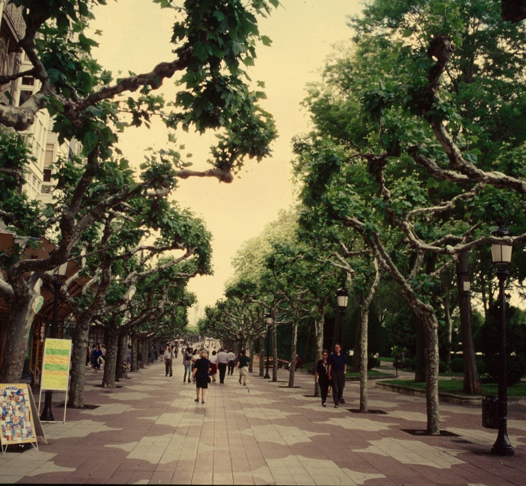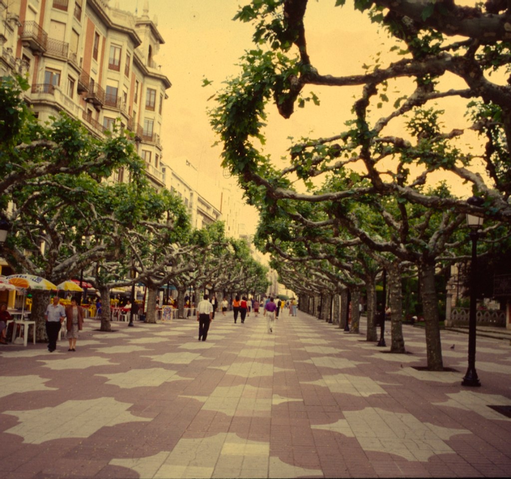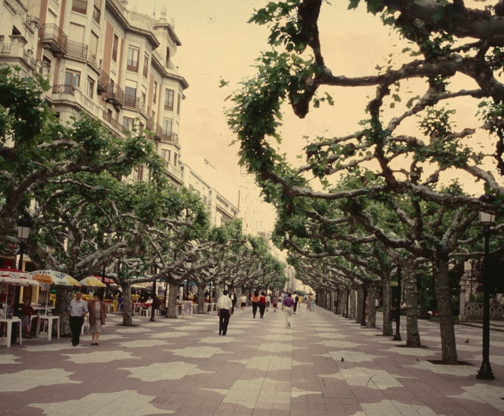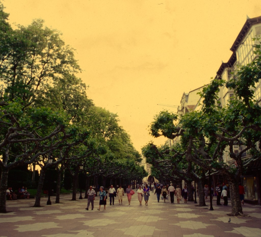 “ Así, la llamada burguesía -una clase media que a sí misma no se reconocía como tal- paseaba por lo que hoy es la zona mas próxima al Casino (la acera del Suizo); la mesocracia (que a sí misma se reconocía como los artesanos), por la zona media del paseo, y la gente generalmente considerada como servicio, por la vía más cercana a los jardines. La determinación clasista que situaba a los -a las, para ser más precisos- que deambulaban por la acera del Suizo era muy precisa e insalvable: llevar sombrero.