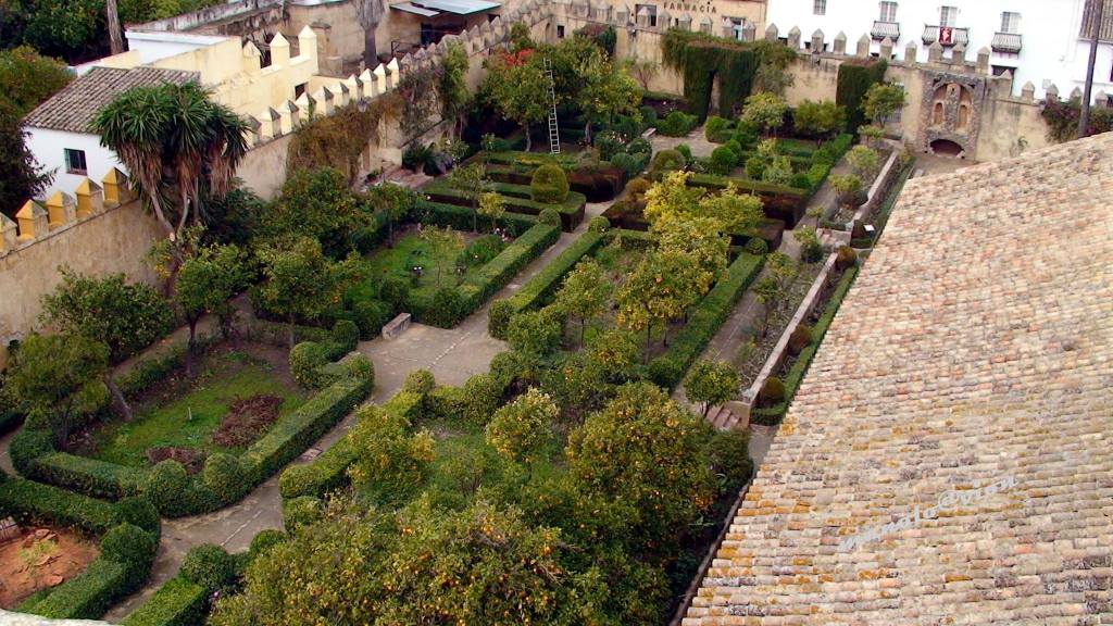 El terreno se reparte en distintos planos unidos por escaleras, con calles rectas. Su vegetación esta casi limitada a plantas de hojas perennes como el boj, romero, mirto y ciprés, que pueden ser podadas y moldeadas en formas y tamaños concretos. Como contraste se pueden ver flores de gran colorido que fueron introducidas en Andalucía por reminiscencia árabe.