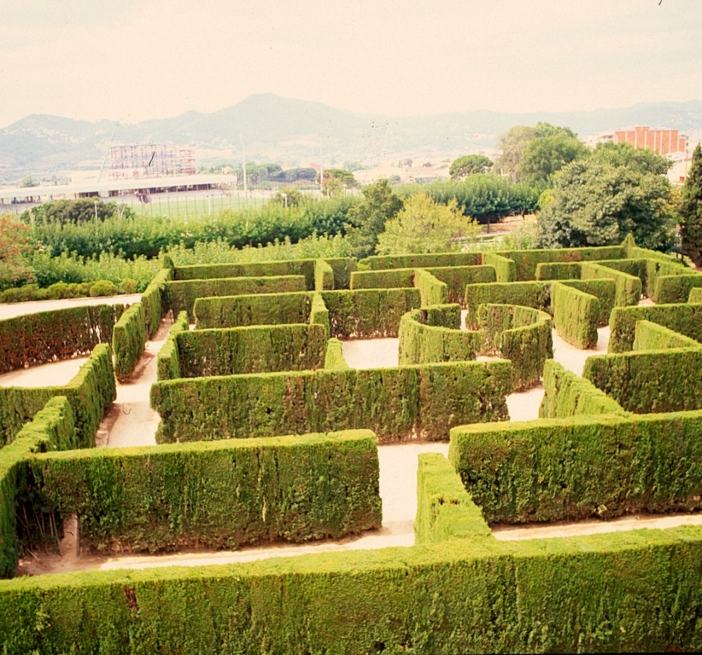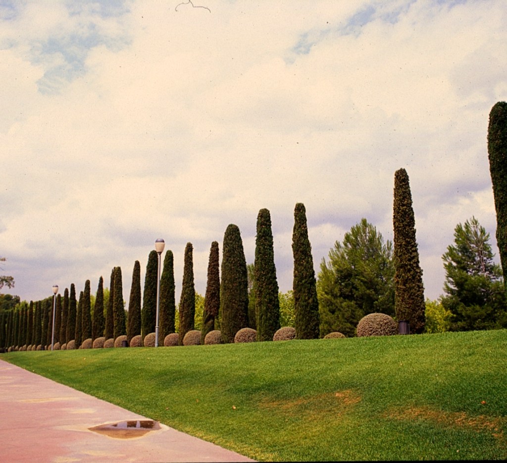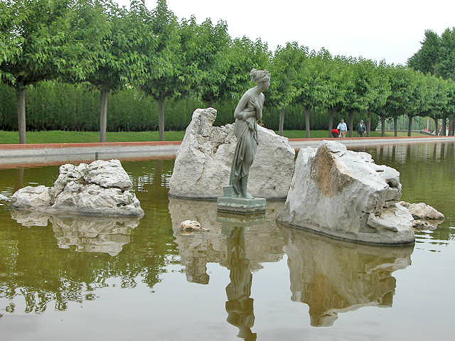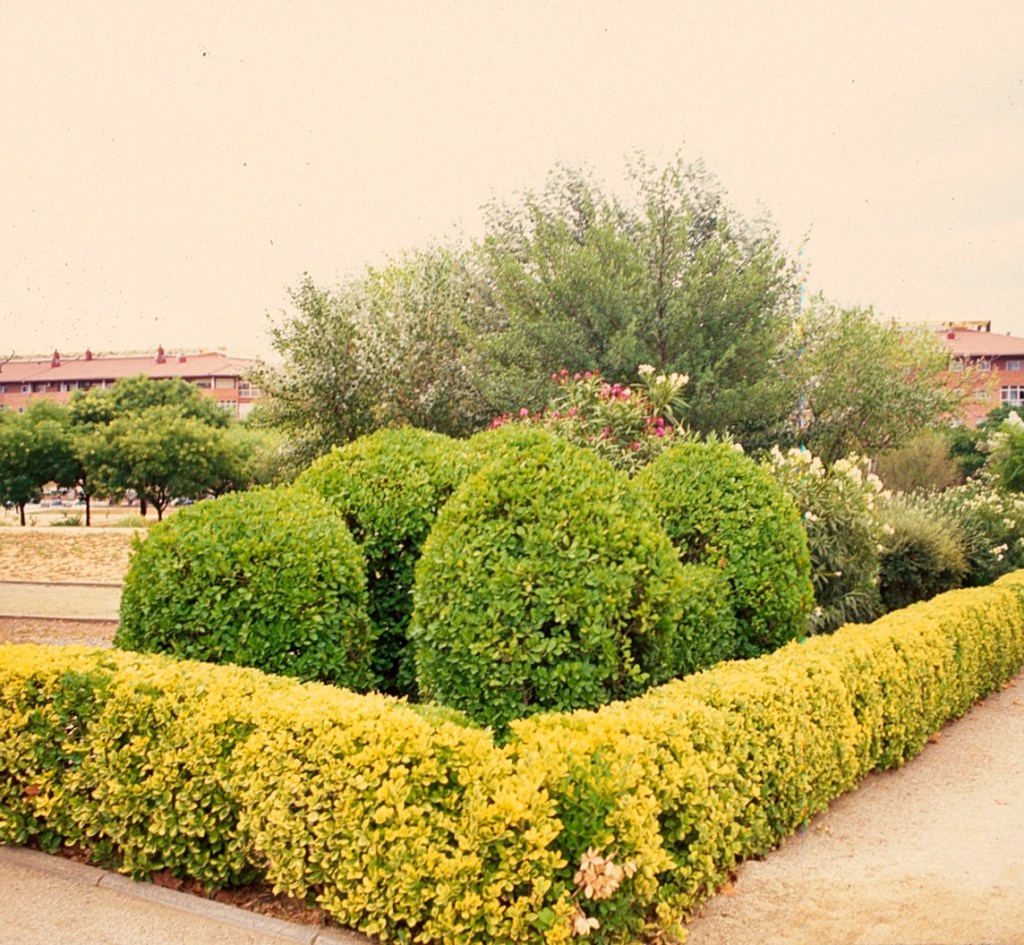 En su entorno, el parque moderno sigue la traza de los antiguos campos de cultivo de la finca con una estructura de grandes trapecios que rodean a los viejos jardines.