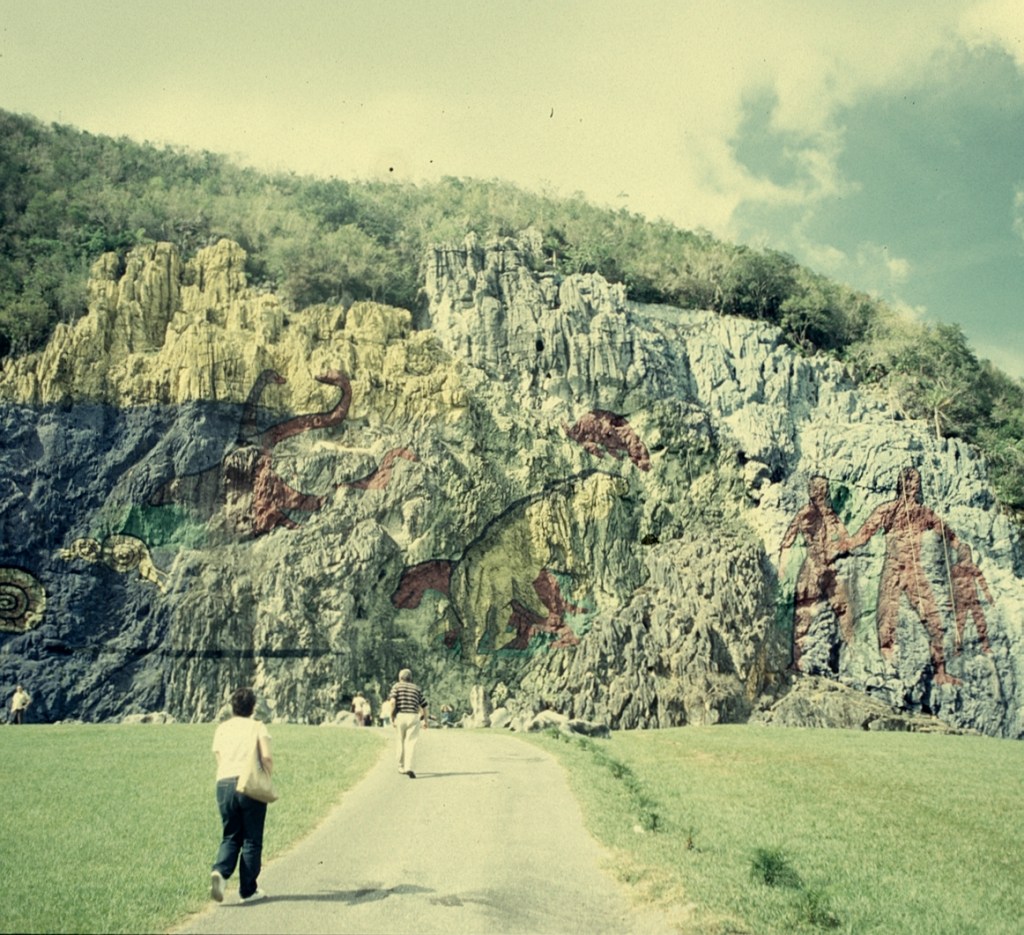 El sorprendente Mural de la Prehistoria está pintado sobre la pared natural del mogote Pita del Valle de Dos Hermanas, en la Sierra de los Órganos, a 4 km al oeste del pueblo de Viñales, en el occidente de Cuba.