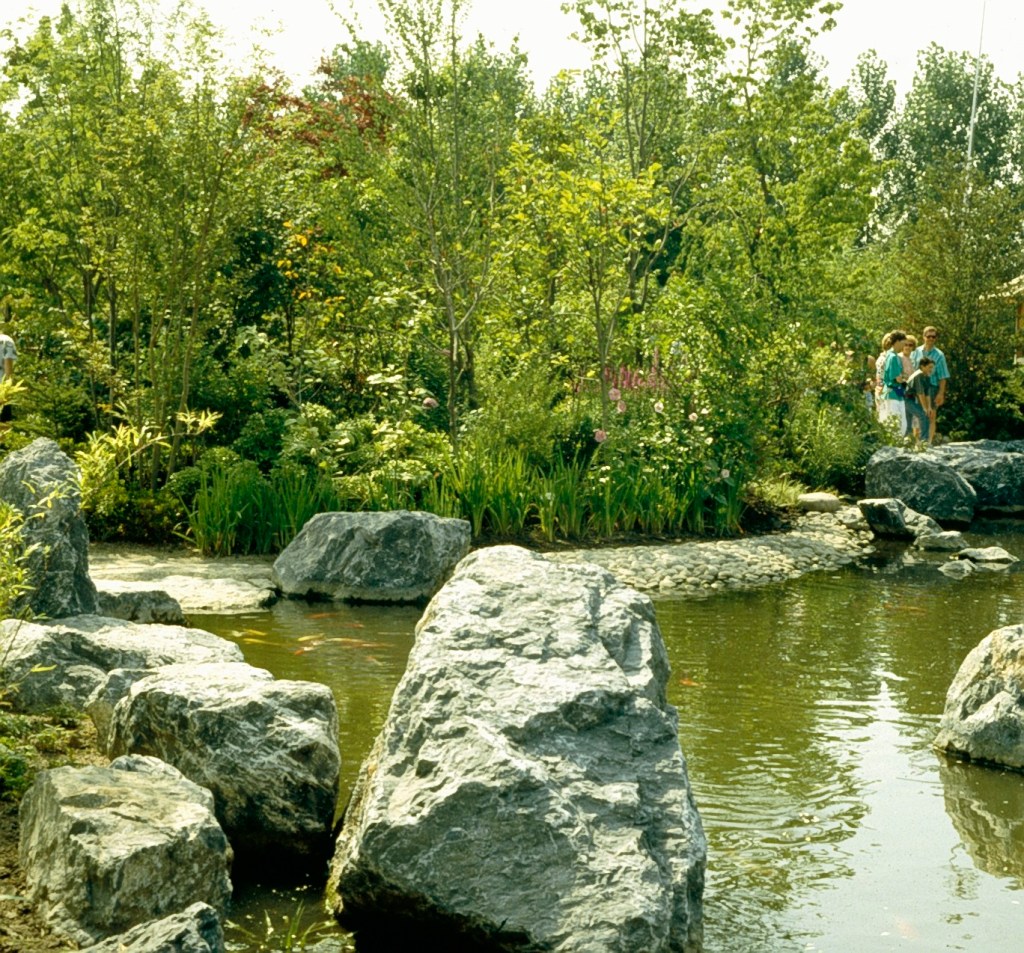 Cada tema «país» tiene su propia atmósfera natural. El césped se “peina” por la mañana y por la noche y las plantas se eligen, disponen y recortan para contribuir a la decoración.