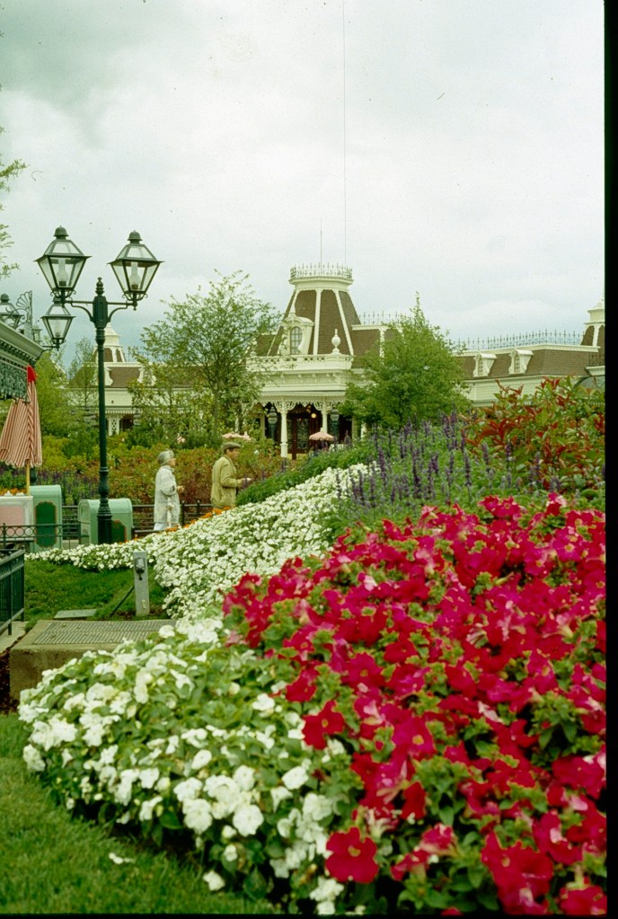 Las plantas, las flores, los árboles y la vegetación se seleccionan, colocan y cortan cuidadosamente para mezclarse armoniosamente con el ambiente. Las flores en colores sutiles se adaptan perfectamente a la atmósfera de Main Street USA, una pequeña ciudad victoriana de principios del siglo XX.