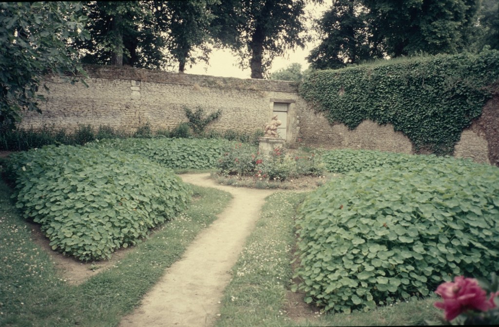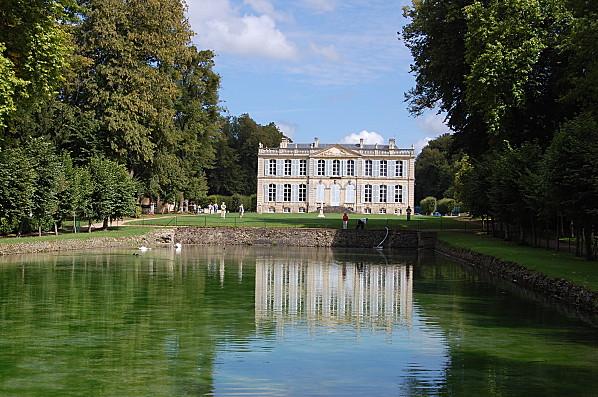 El gran estanque lo alimenta una rivera con blancos cisnes en el agua azul de cielo y verde de plantas flotantes, junto a bosquetes de árboles con los troncos cubiertos de líquenes o de enredaderas. Subsisten, en verjas y frontones, los escudos de armas de los primitivos dueños cuyos tres jabalíes fueron raspados por la Revolución.