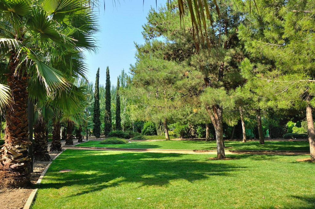 El parque está constituido de varias avenidas soleadas entre las que destacan el paseo de la alameda, que frena el impacto acústico y visual de la cercana autovía, y el paseo de tilos. Los paseos y caminos delimitan varios sectores: los jardines neoplasticistas, las acequias, la fuente cibernética, el bosque de ribera, las huertas y una de las mayores rosaledas de Europa.