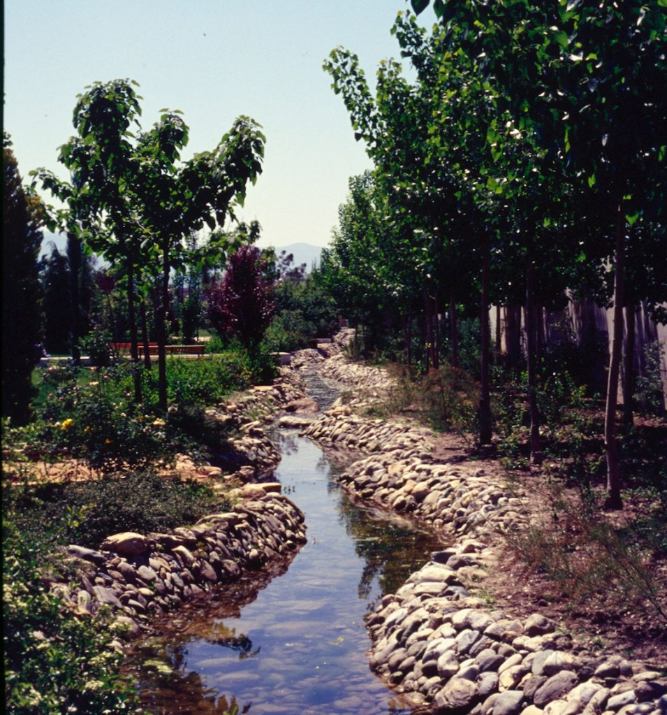 En 1989 el arquitecto granadino José Ibáñez Berbel ganó el concurso de propuestas de diseño y construcción de un parque alrededor de la residencia de los García Lorca. Su propuesta era la «más respetuosa» con respecto a la situación de la huerta y alrededores y a su tradición; además, era una oportunidad de crear un elemento que actuara de barrera con respecto a la ruidosa circunvalación. La intervención aparecía surcada de multitud de fuentes y establecía el concepto de «acequia» como hilo conductor de todo el proyecto, respetando las existentes y creando otras nuevas. Las acequias existentes se restauraron para conservar el antiguo sistema de riego. Finalmente, el parque fue inaugurado el 10 de mayo de 1995.²