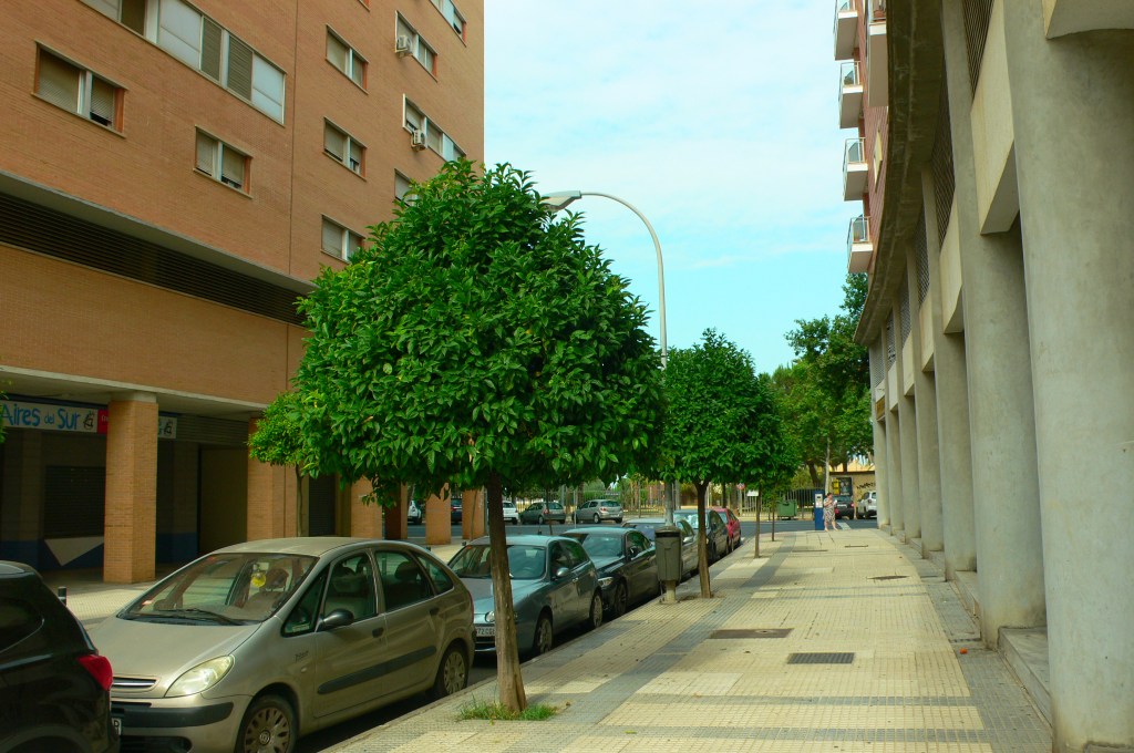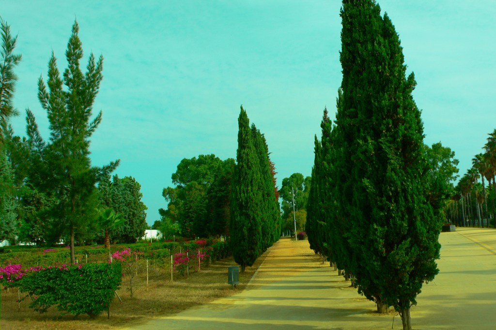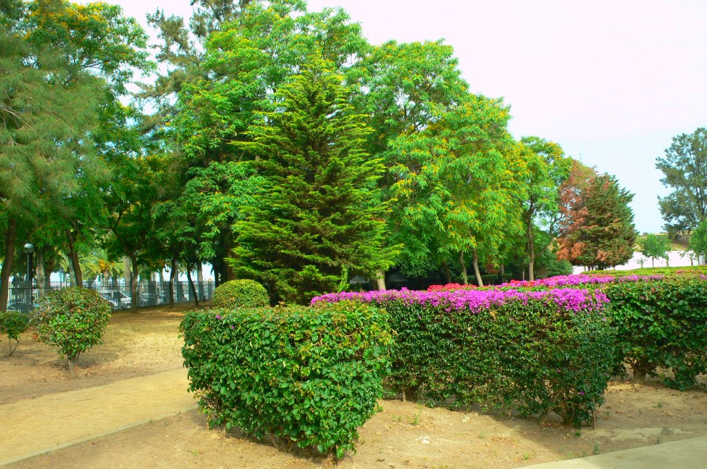 En el arbolado predominan las Tipuana tipu.-Palo rosa y como no los naranjos amargos, pinos, acacias de Constantinopla.- Albizia julibrissin, y Jacarandás.-Jacaranda mimosifolia junto con una gran variedad de palmeras y otros arboles singulares