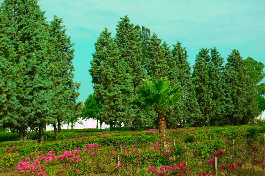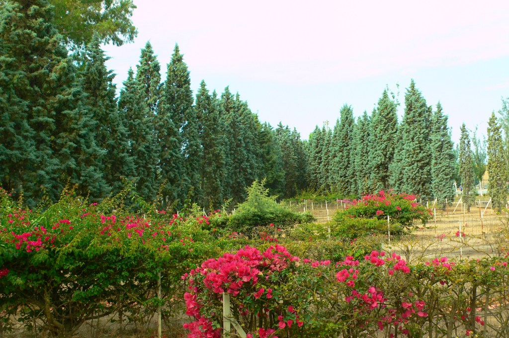 En su parte vegetativa hay amplias zonas ajardinadas con extensiones de césped, setos, palmeras, cipreses de Arizona, numerosas variedades de rosales de rosas modernas y Bouganvilleas alambradas formando setos.