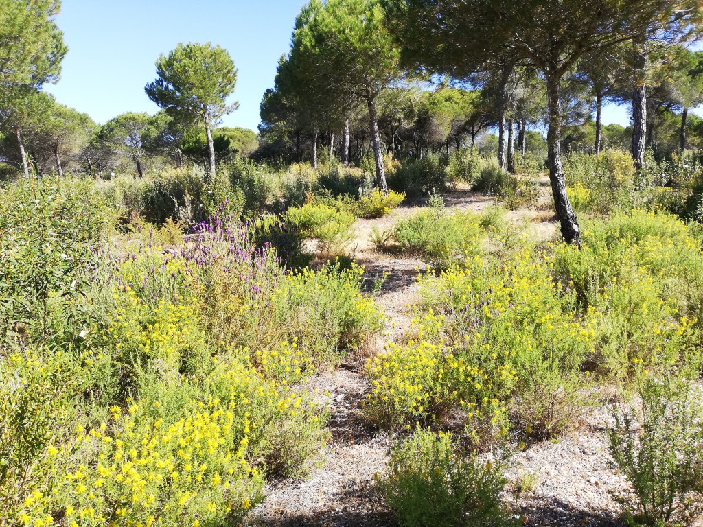 Muchas de ellas están tomadas desde un sendero de 2 km de distancia, que comienza una vez se cruza al oeste (dirección El Rompido) el puente del Caño de La Culata y su recorrido discurre una primera parte por una vía carril bici – peatonal y una segunda parte por una pasarela de madera que cruza las dunas paralelo al Río Piedras. Este sendero es un pequeño Itinerario Botánico, que llama la atención del visitante sobre a algunas de las especies de plantas más características de la vegetación de los arenales costeros y zonas forestales del litoral atlántico andaluz.