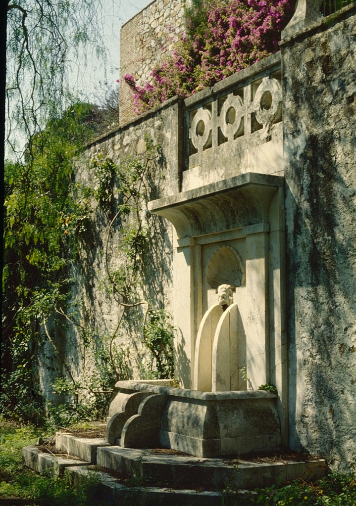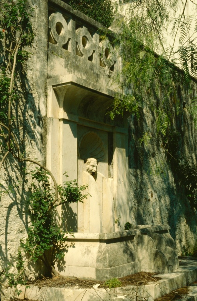 El “jardín de la fuente de la vieja”, una fuente desde la que el agua cae a través de la boca de un rostro con la fisonomía de un sátiro .