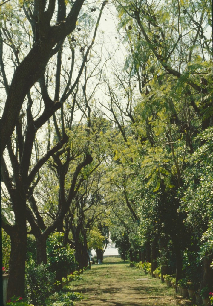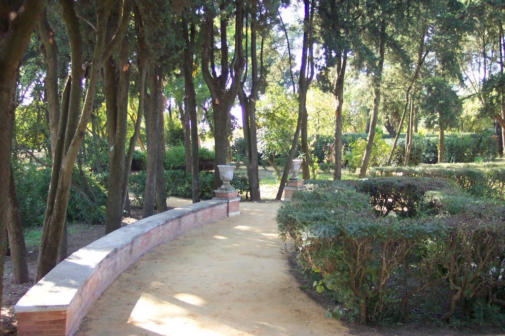 Puso un bosquete simulador de encinares y un paseo de jacarandas que introdujo, escalinatas de mármol, setos, naranjos y pérgolas.