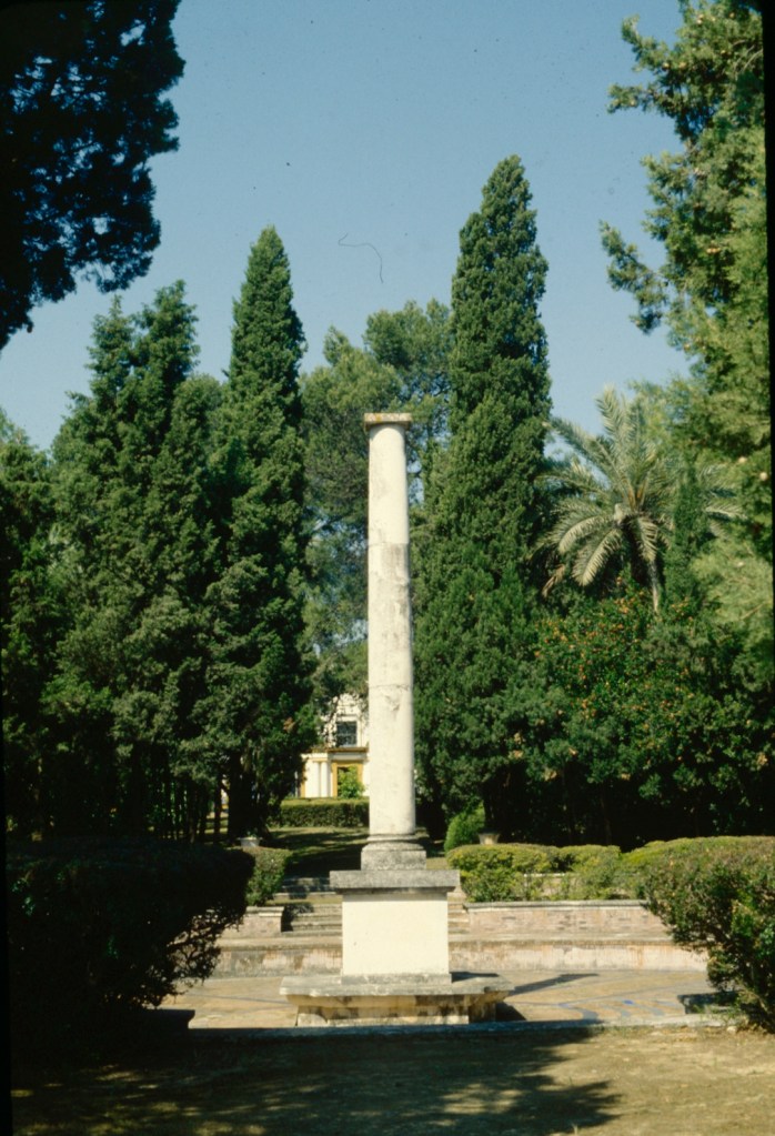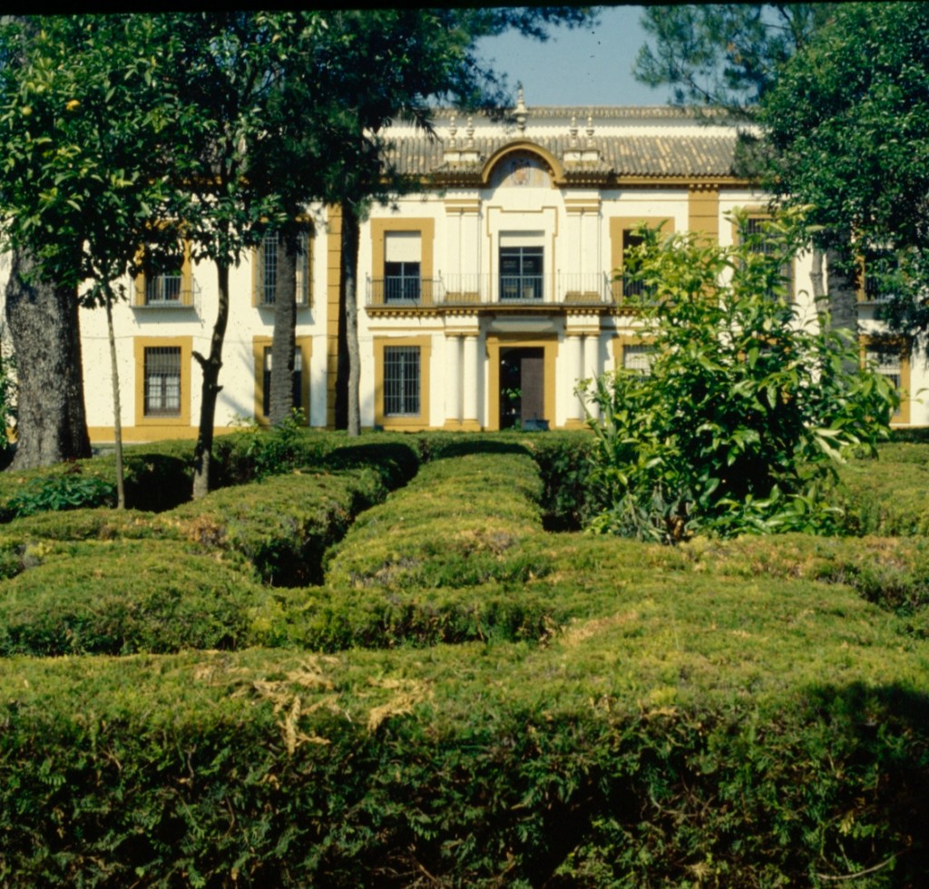 Se trata, pues, de un jardín histórico en el que crecen 61 especies de árboles, arbustos y toda la zona se articula sobre un eje central que parte de la fuente que se encuentra junto a la casa, atraviesa un estanque elíptico, perspectiva y eje principal y termina en una balaustrada que permite una vista sobre Sevilla, poniendo fin al terreno correspondiente al jardín y dos perspectivas axiales que con sendos paseo nos conducen a los dos miradores, norte y sur uno en cada lado del jardín con vistas panorámicas hacia el paisaje.