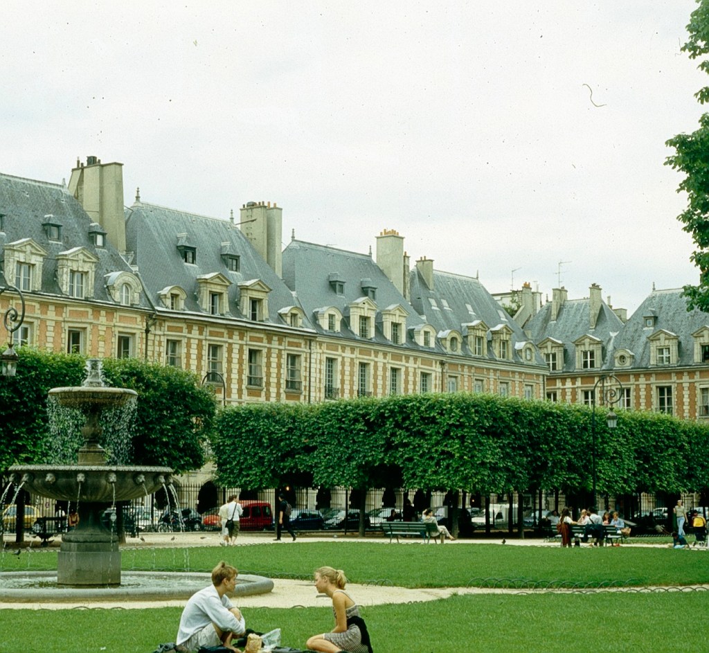 La futura plaza des Vosges es obra de los arquitectos Jacques Androuet du Cerceau y Louis Metezeau. El resultado fue esplendido, con la realización de un extraordinario conjunto de 36 pabellones de ladrillo rojo construidos de forma simétrica.