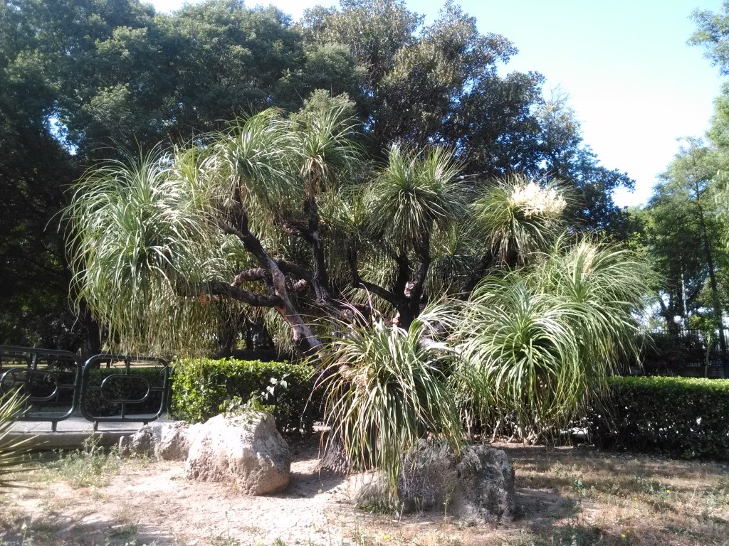 Conviene destacar entre los arbustos el hasta ahora identificado como dasilirio (Dasylirion serratifolium) planta de origen mexicano, pero al ofrecer floraciones me ha entrado la duda de si era un dasilirio o una Nolina o Beaucarnea recurvata cuyos orígenes son los mismos. La planta ha sufrido incendios producidos por los vándalos cuando sus hojas secas permanecían en la planta.