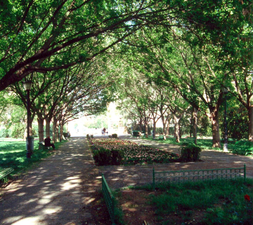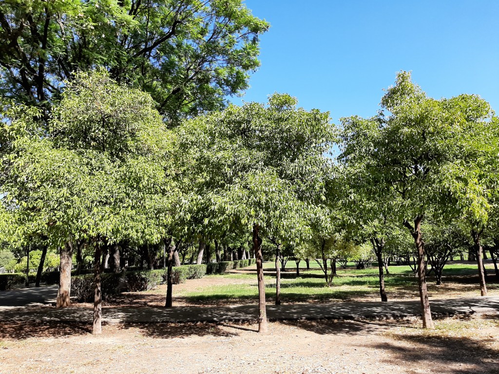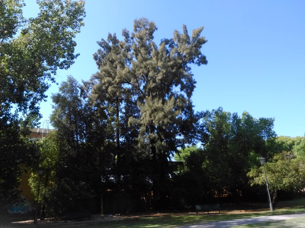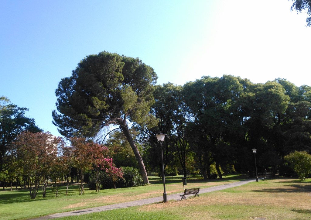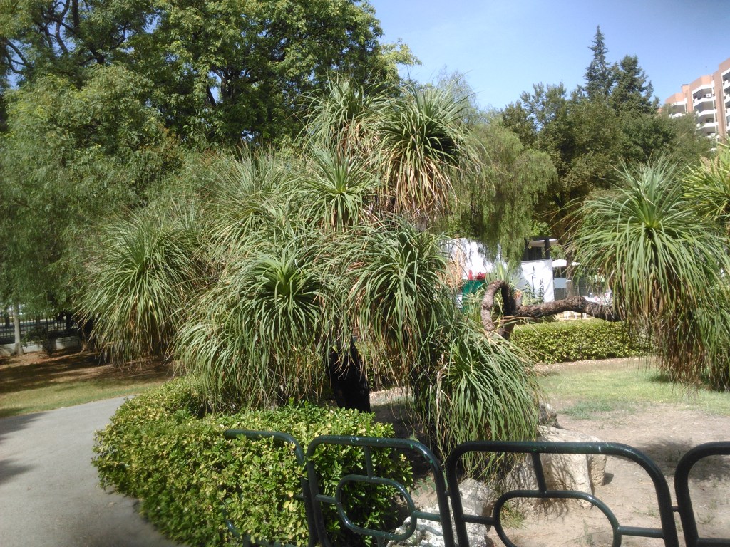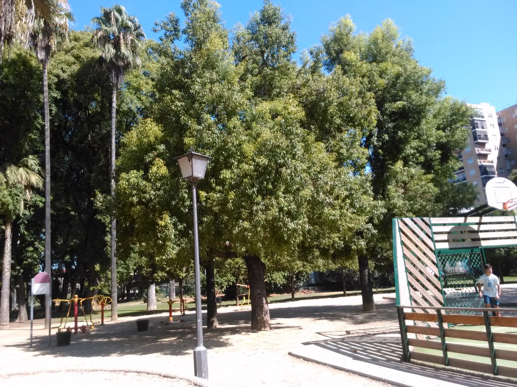 A la entrada principal del parque por enfrente a la Avenida Virgen de Lujan había un túnel de sombra ofrecido por acers.-Acer negundo var.violaceo que proporcionaba las primeras sombras a la entrada del parque, lo acers fueron eliminados y en su lugar se han plantado brachichiton rojo.-.Brachychiton acerifolia que por su porte y forma de crecimiento nunca ofrecerán la sombra de sus antecesores.
